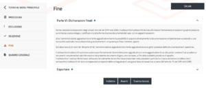 Completa le DICHIARAZIONI FINALI e scegli se tornare INDIETRO, CANCELLARE o SCARICARE LA DOCUMENTAZIONE.