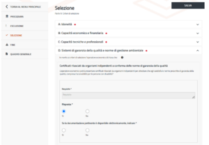 Visualizza i criteri di selezione richiesti per partecipare alla Gara e inserisci i requisiti:
