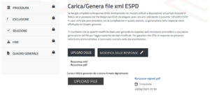 All’interno della sezione, nella pagina Carica/Genera file xml ESPD, è possibile procedere con il caricamento di un file XML precedentemente generato o con la creazione da zero di un nuovo file.