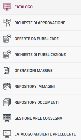 Menu Gestione del catalogo