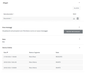 In questa sezione puoi configurare e gestire comunicazioni con l'operatore economico contraente già prima dell’invio dell’ordine, con la possibilità di inserire allegati.