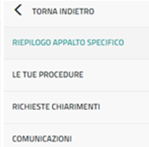 Il menu laterale è uno strumento dinamico e cambia in base ai dati inseriti e alla fase della risposta in cui ti trovi: per questo motivo potresti visualizzare voci diverse man mano che procedi con la partecipazione all'Appalto specifico.