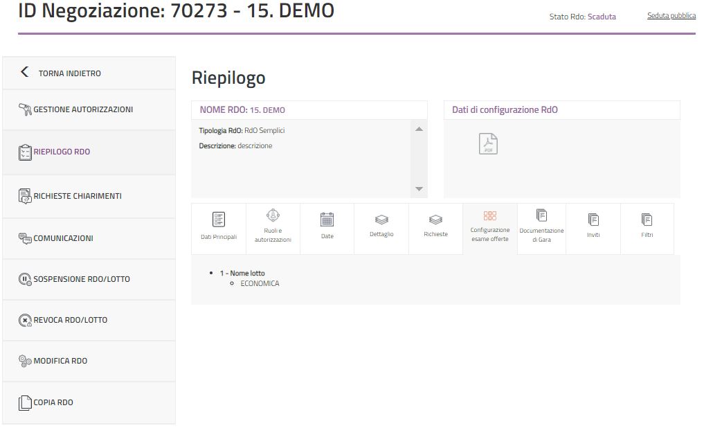 CONFIGURAZIONE OFFERTE RDO S